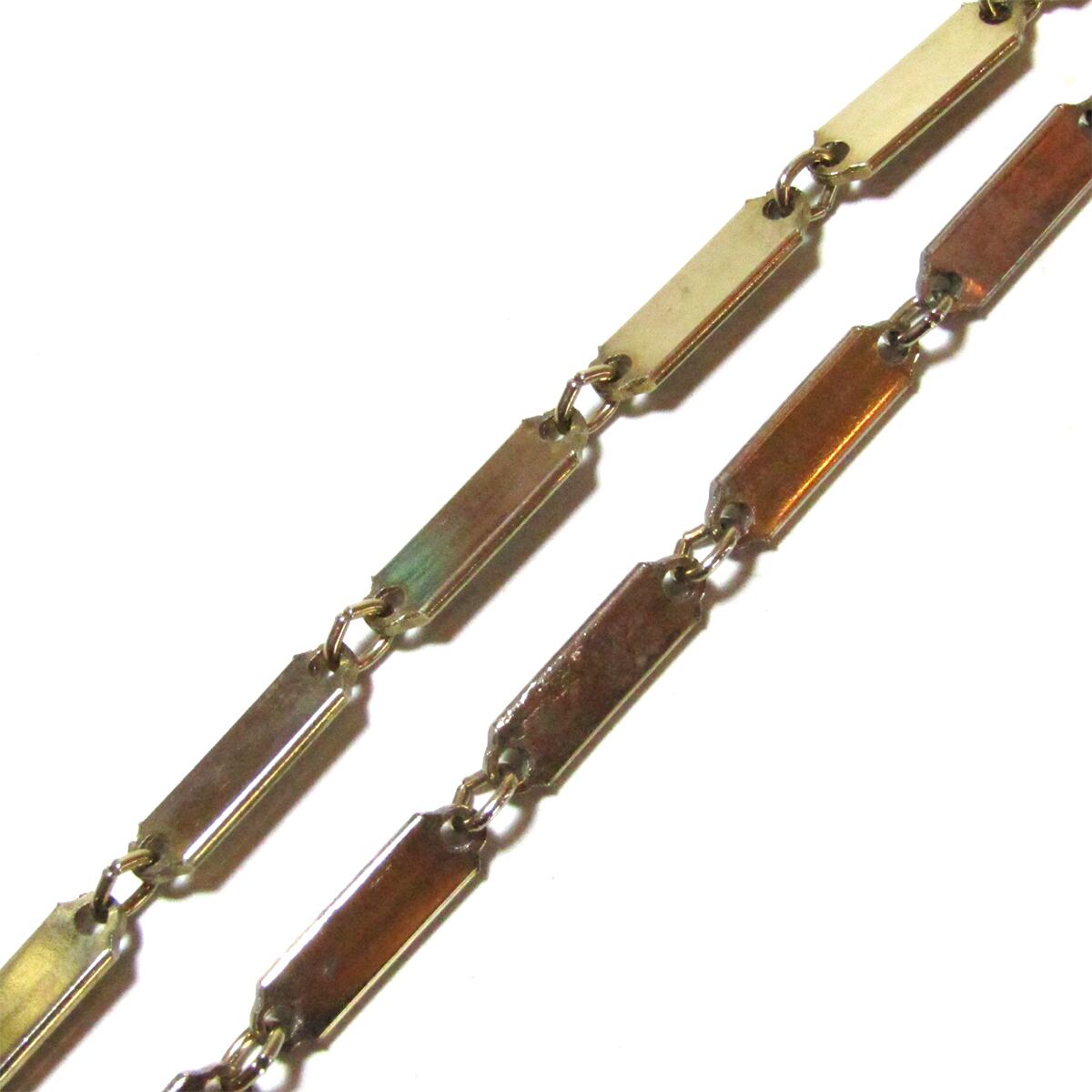 ゴールドカラーの細長いリンクを連ねたチェーンに