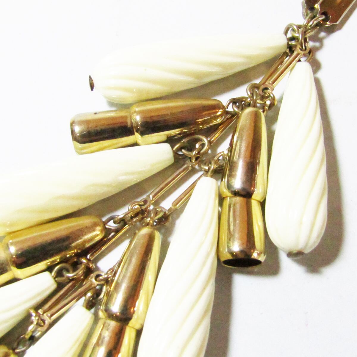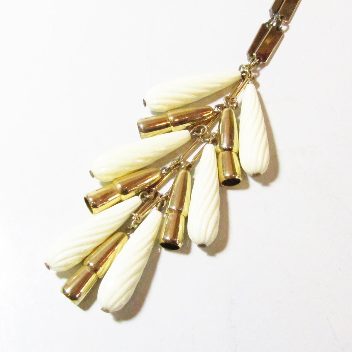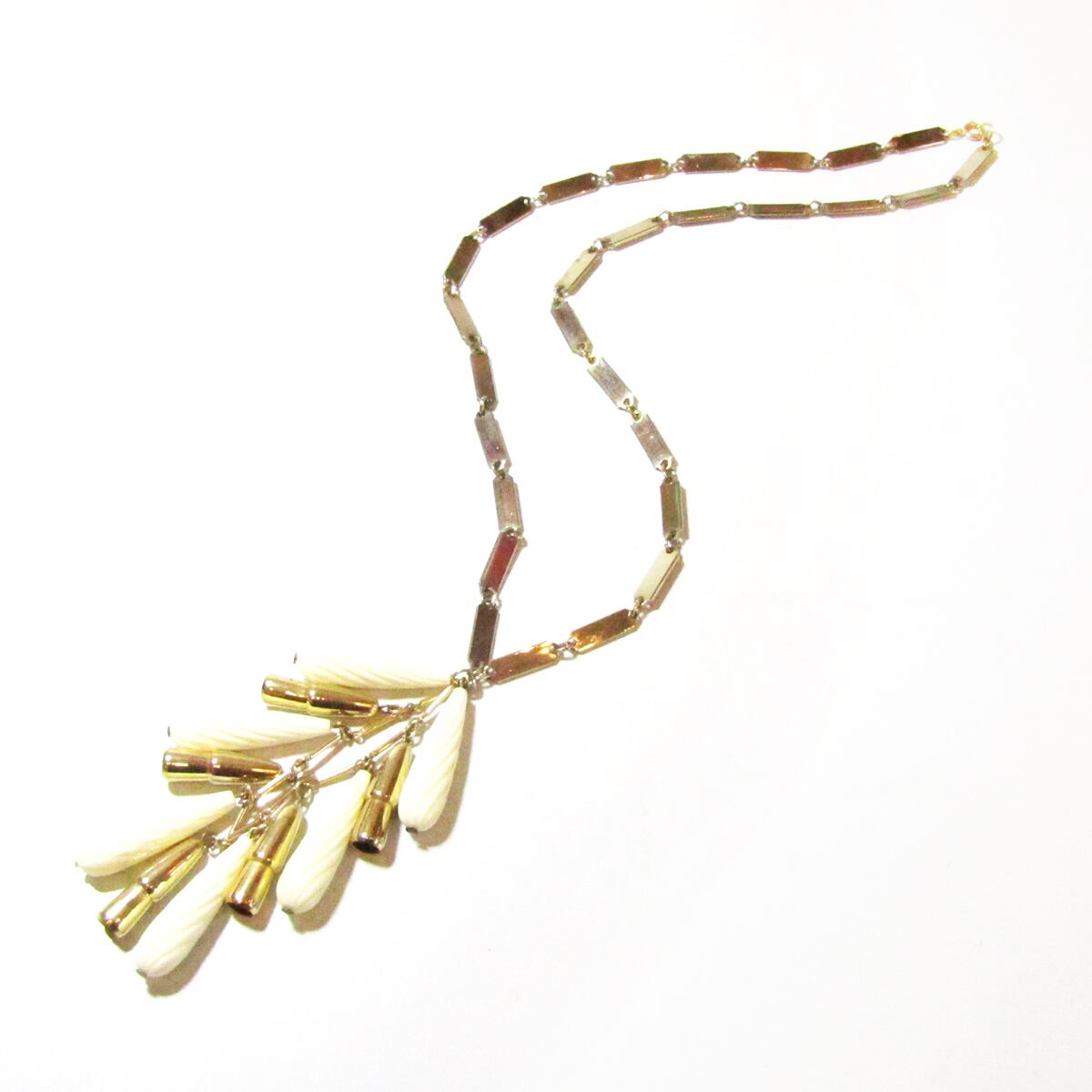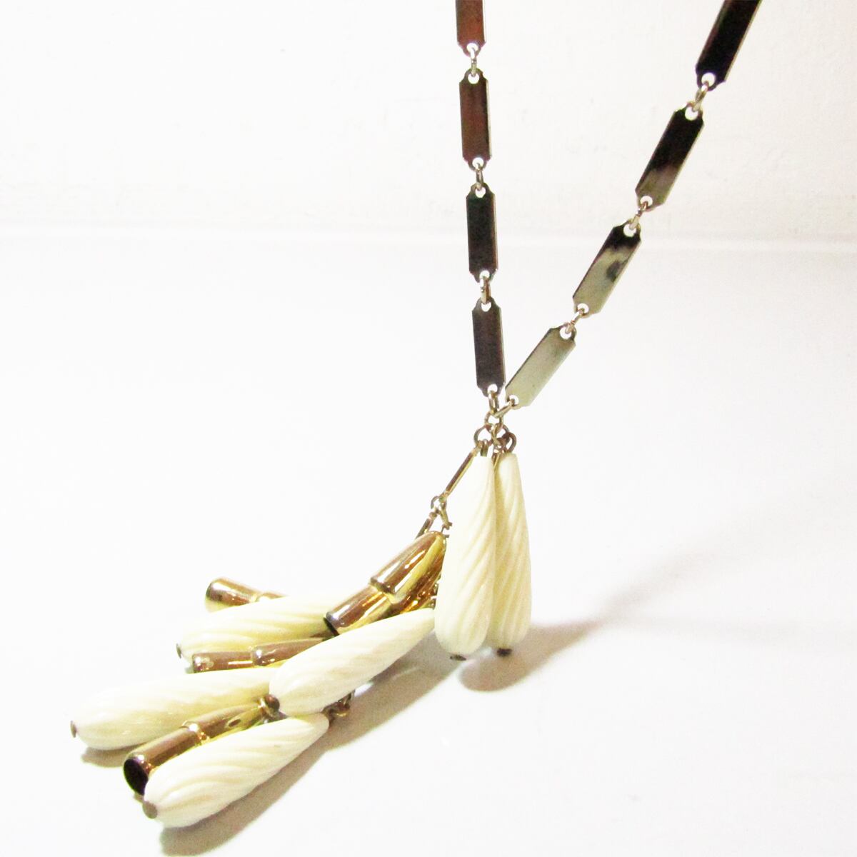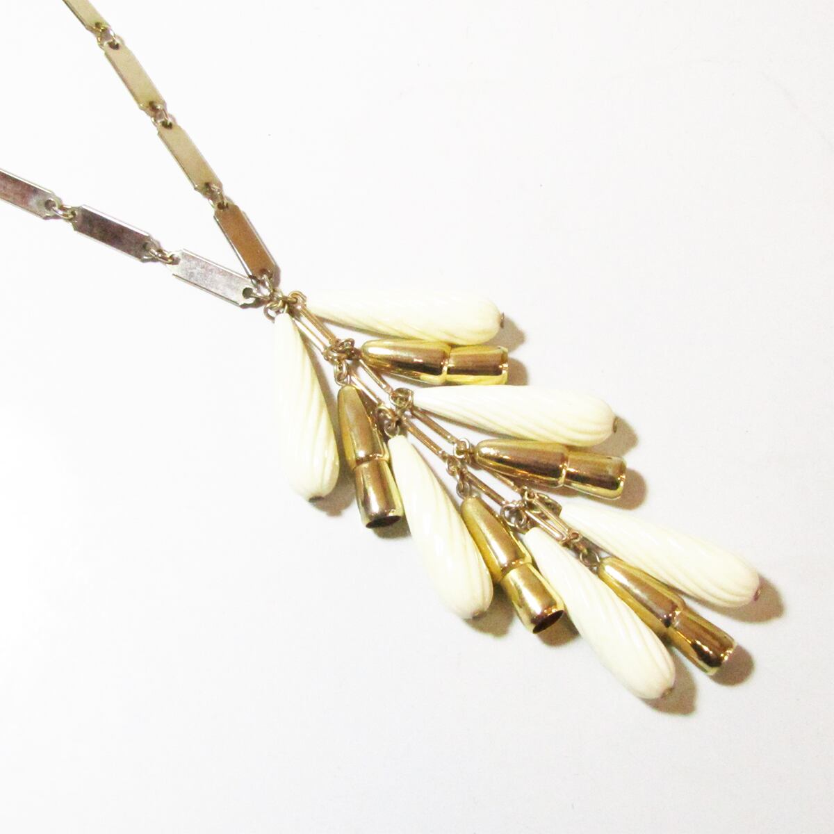 Vintage white fringe drop parts long necklace