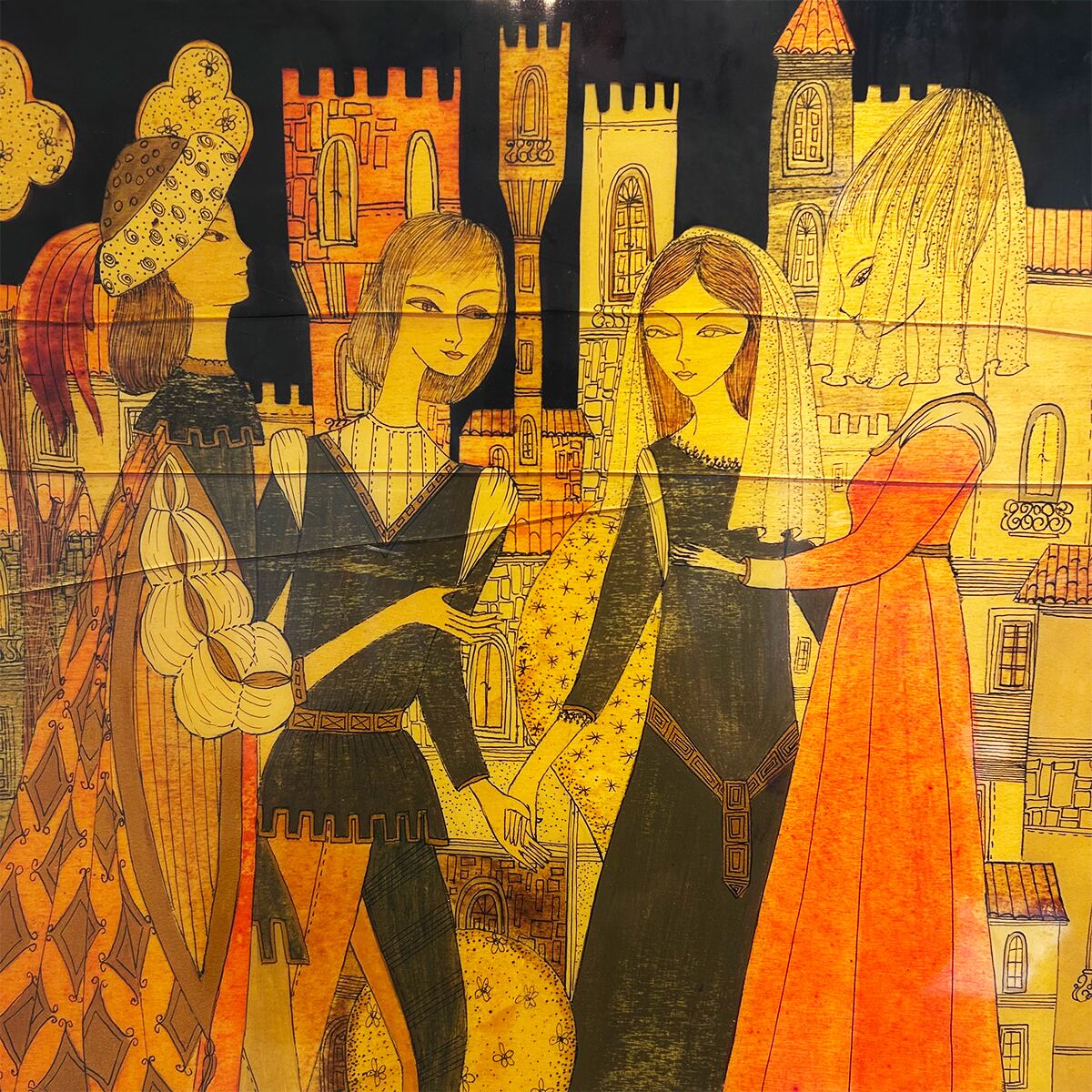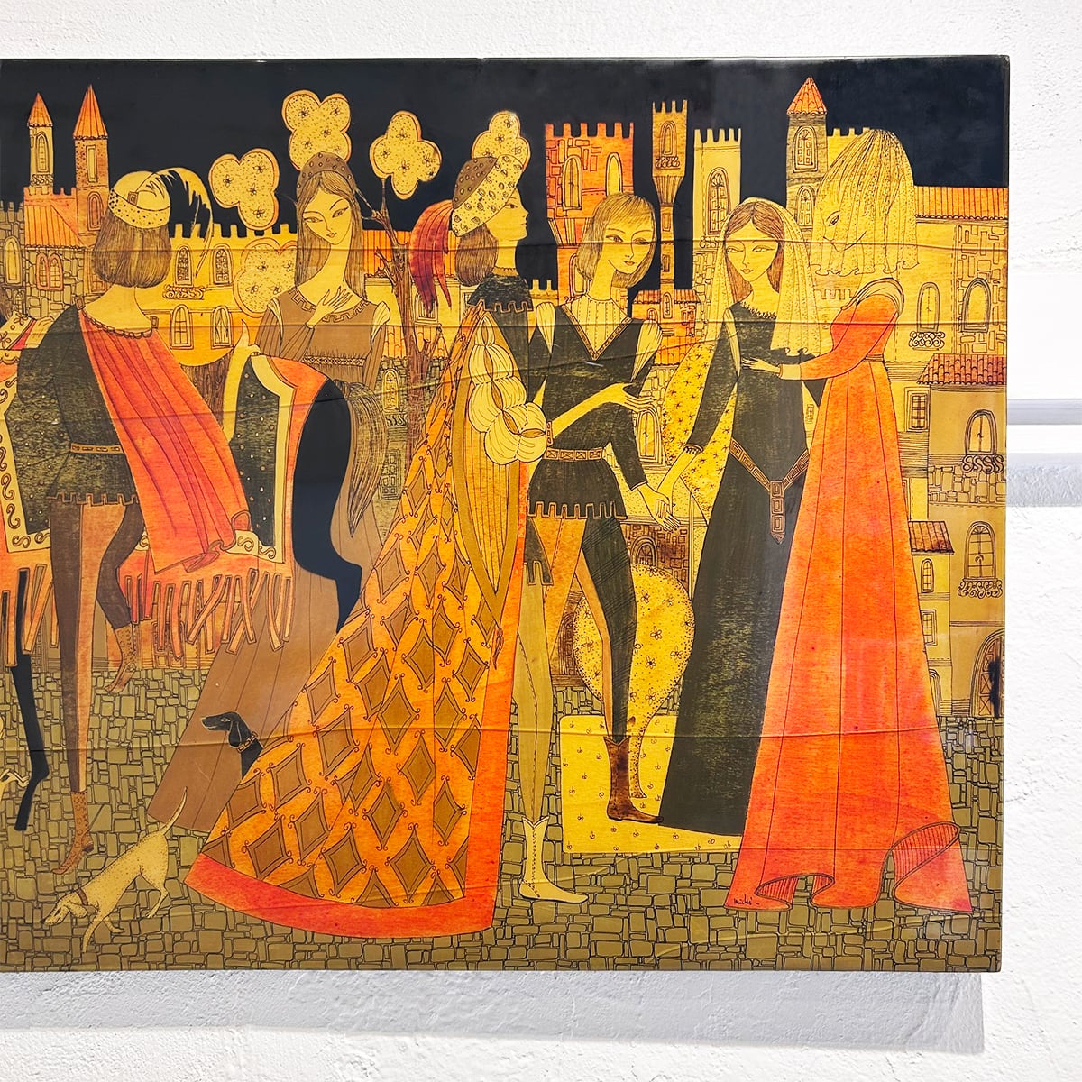 70s Italy 「Michi Sgorbigno」 painting art wooden panel