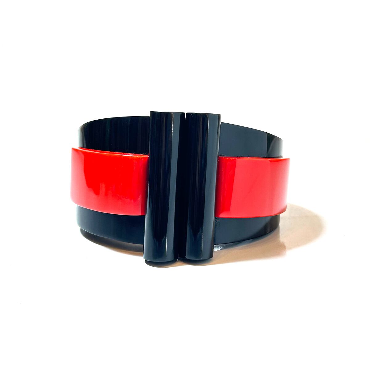 60s Marion Godart Paris black × red acrylic bangle