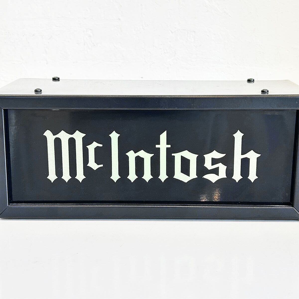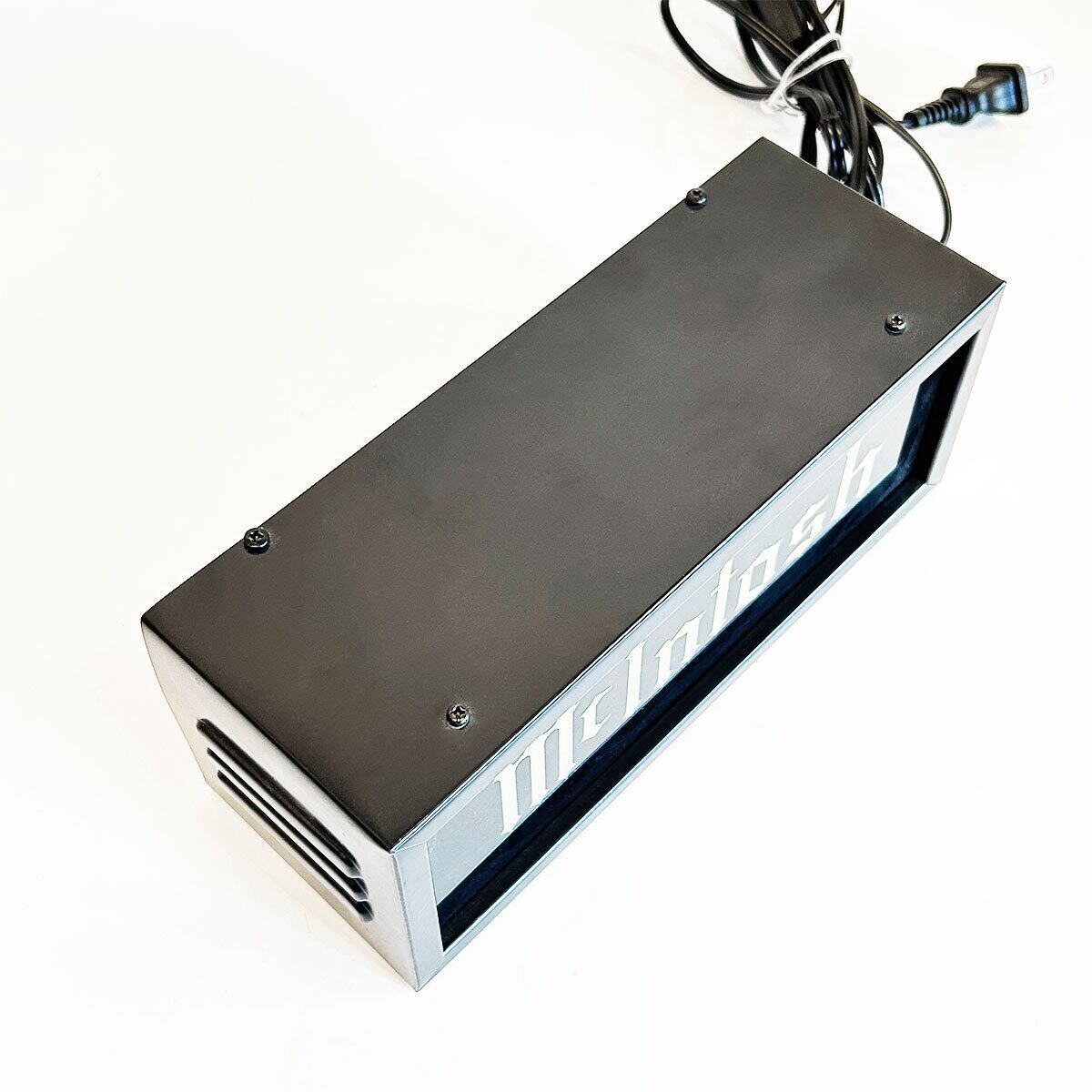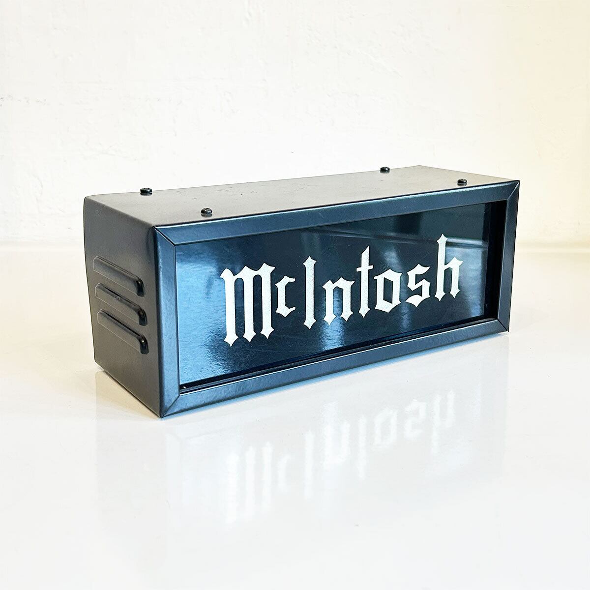 ブラックのボックスフレームに、ゴシック体の“McIntosh”ロゴが浮かび上がる印象的なデザイン。