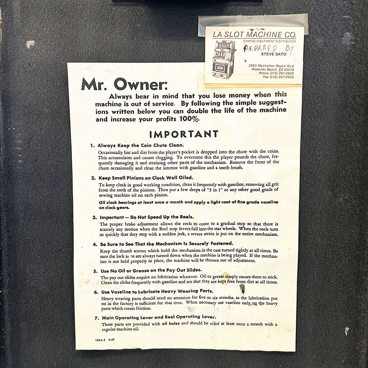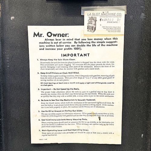 アメリカ製のヴィンテージスロットマシーンでございます。