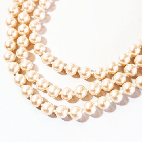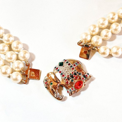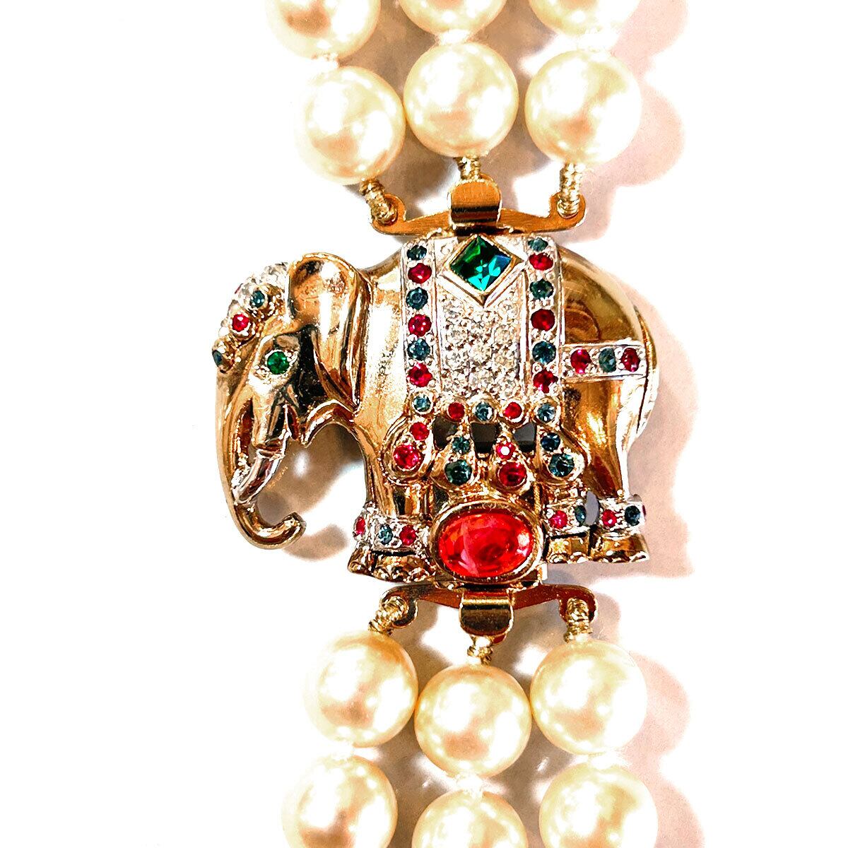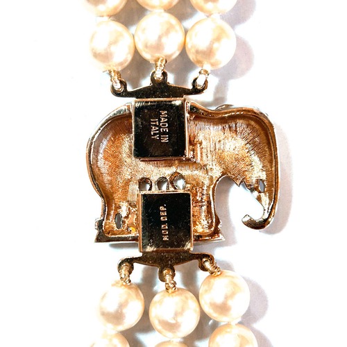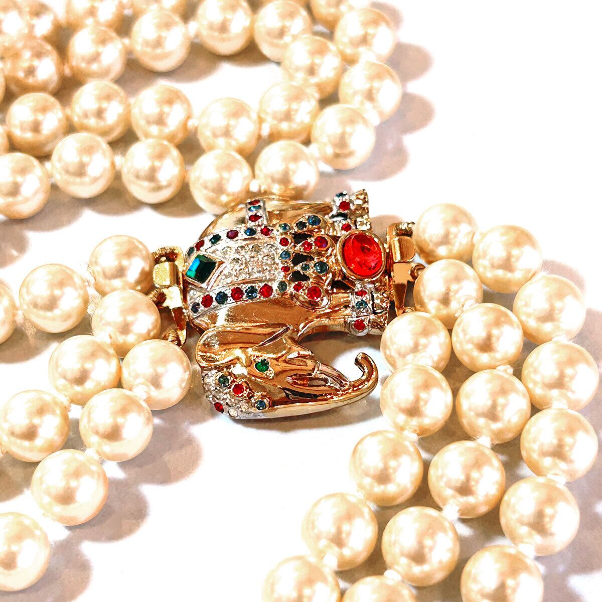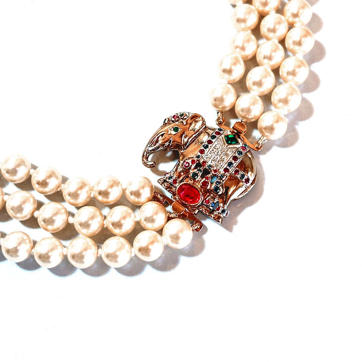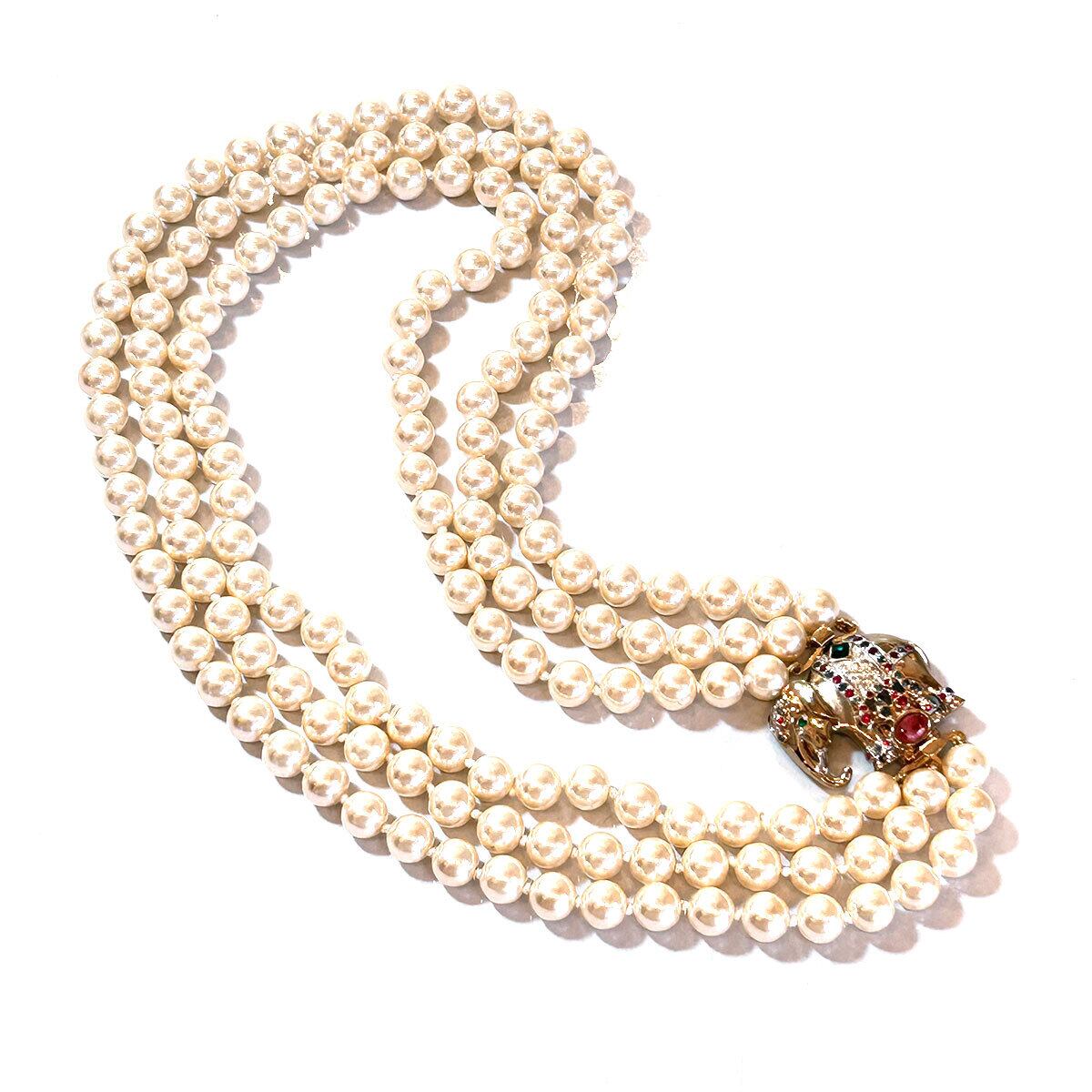 80s Italy Vintage elephant pearl triple-strand necklace