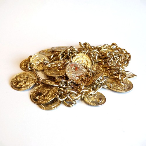 80s Vintage gold metal coin necklace