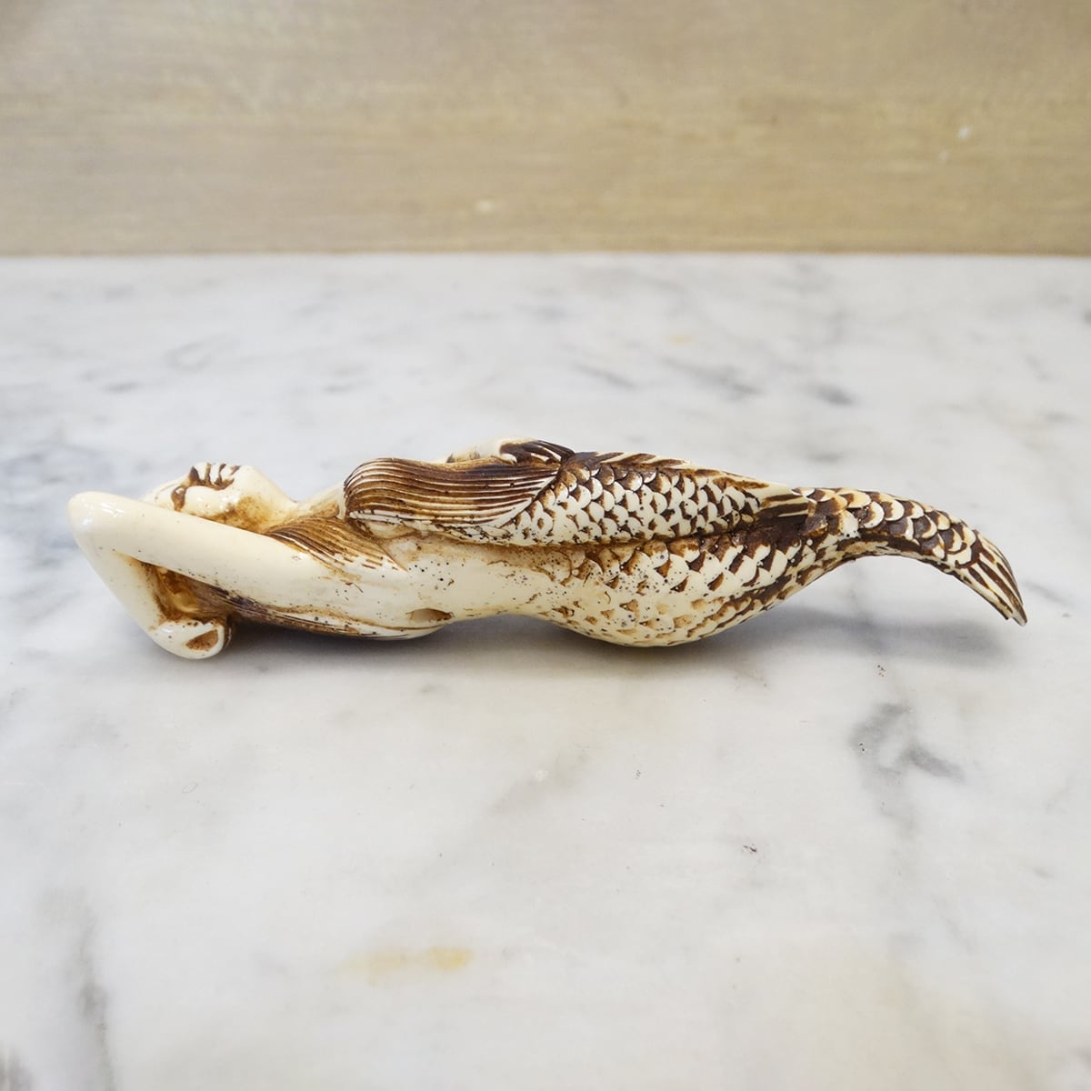 海泡石(メシャム)の人魚モチーフの根付けでございます。
