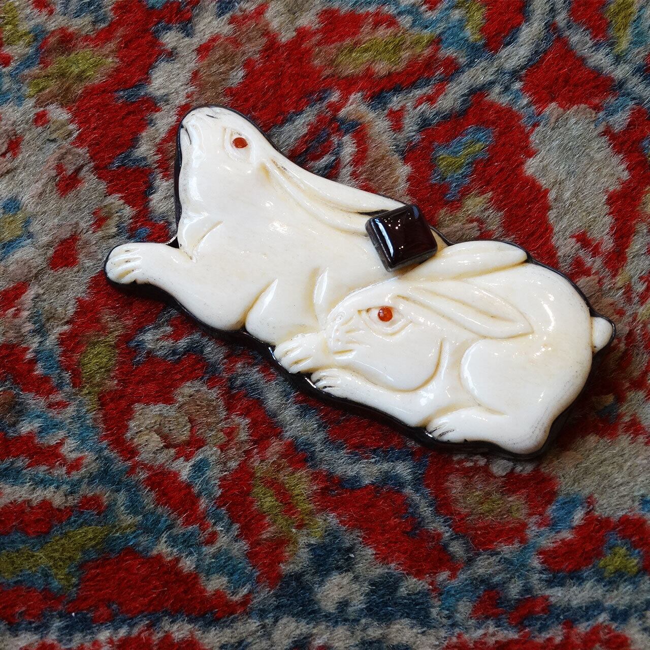 「Amy Kahn Russell」 two rabbits silver brooch & pendant top