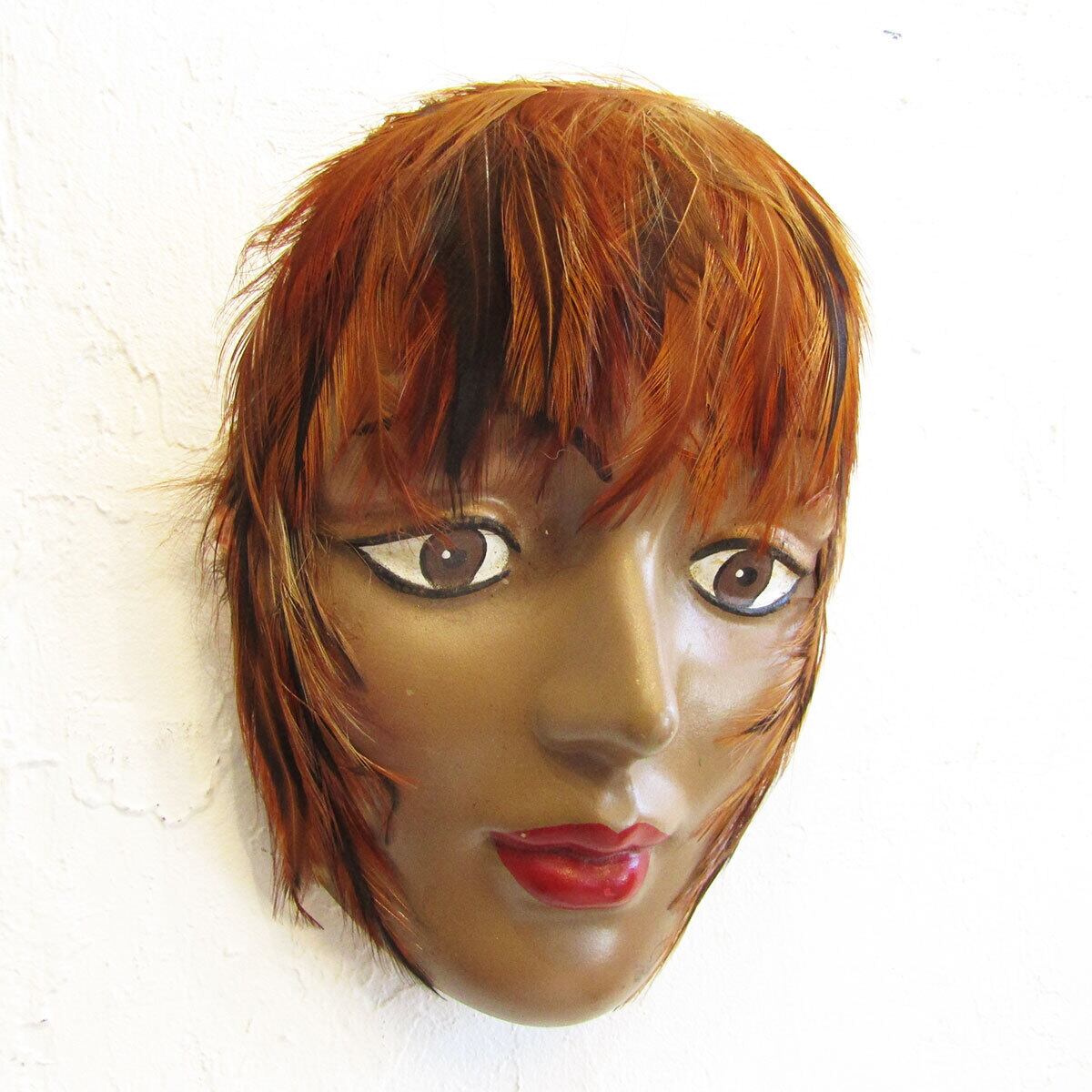 ハワイで制作された女性の陶器製ヴィンテージマスクでございます。