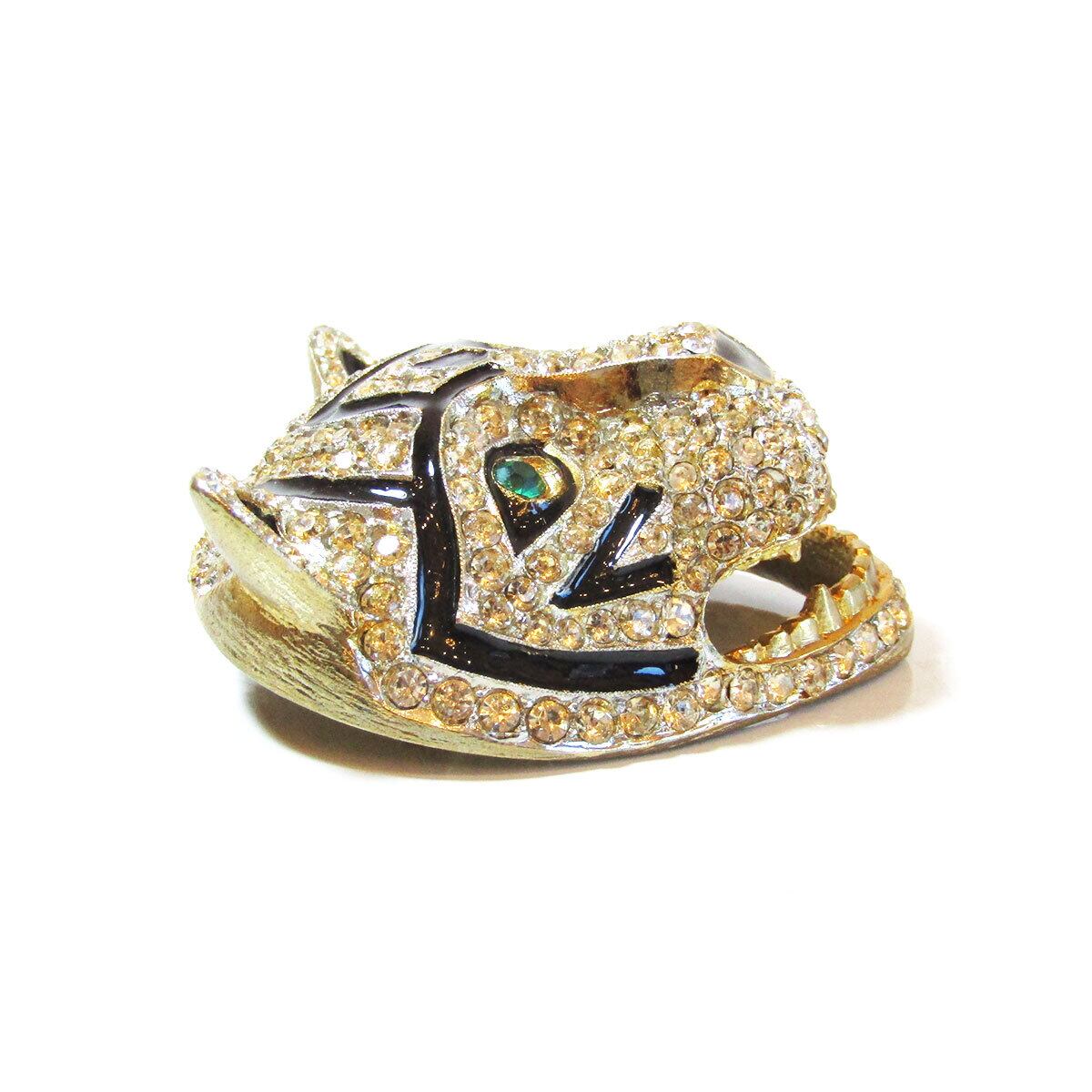 80s SARDI big tiger rhinestone & enamel vintage brooch